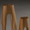 Χειροποίητο ξύλινο κηροπήγιο με συμπαγή φόρμα. Το σώμα ακολουθεί φυσική καμπή, με έντονα νερά στο ξύλο, ενώ το σκούρο στοιχείο στο πλάι και στο επάνω μέρος δίνει αντίθεση και σταθερότητα στη σύνθεση.