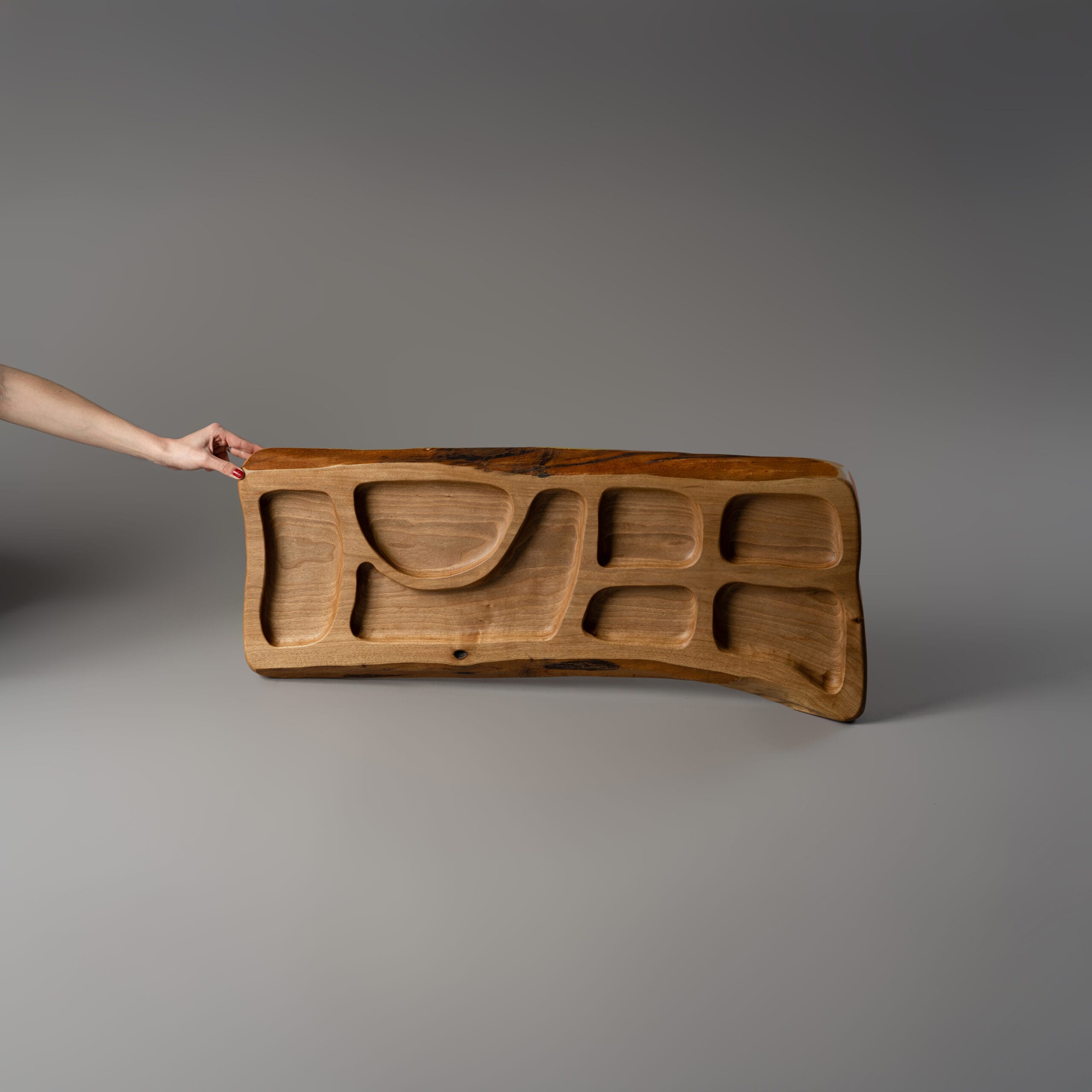 Το KAMARES είναι μια χειροποίητη πιατέλα που ξεχωρίζει για τις μινιμαλιστικές γραμμές και τις ιδιαίτερες θήκες του στο εσωτερικό. Ο εκλεπτυσμένος σχεδιασμός του, με τις καθαρές και λιτές γραμμές, φέρνει μία αίσθηση σύγχρονης κομψότητας και φυσικής ομορφιάς.