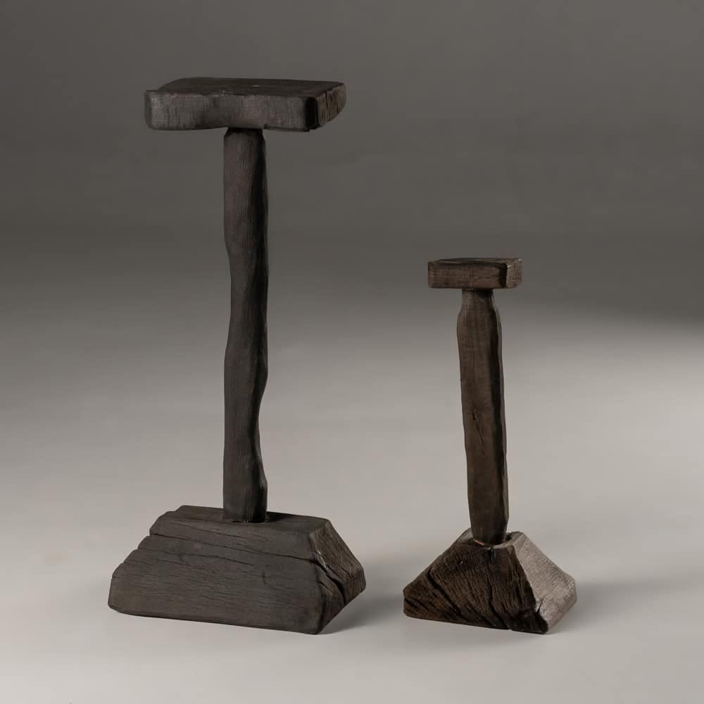 In the Qiura series, our lead creator and craftsman, Valsamis, improvised with idefinite lines, carvings and the Shou Sugi Ban technique.