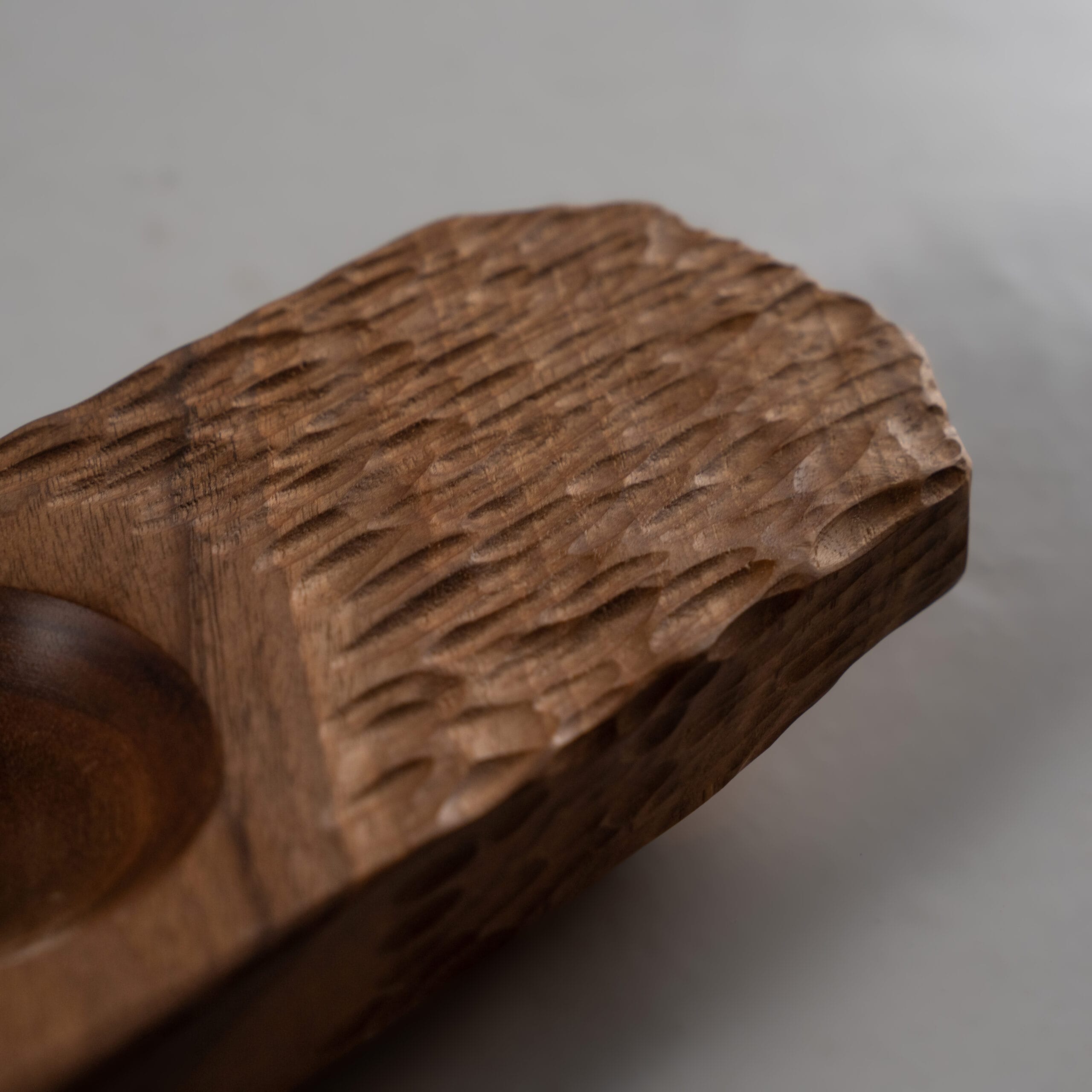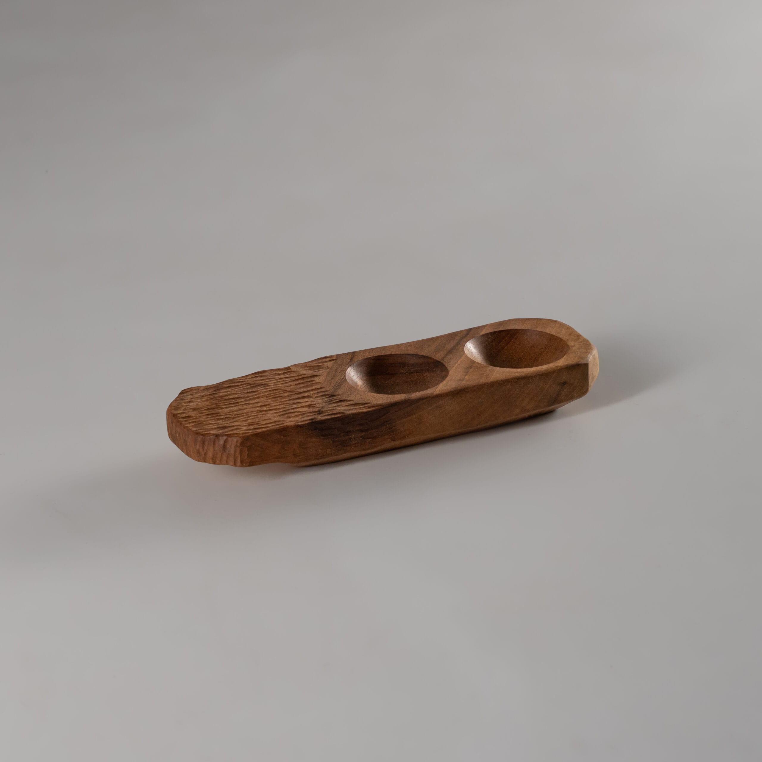 Small and minimal walnut platter with carved slots for dips & sauces.