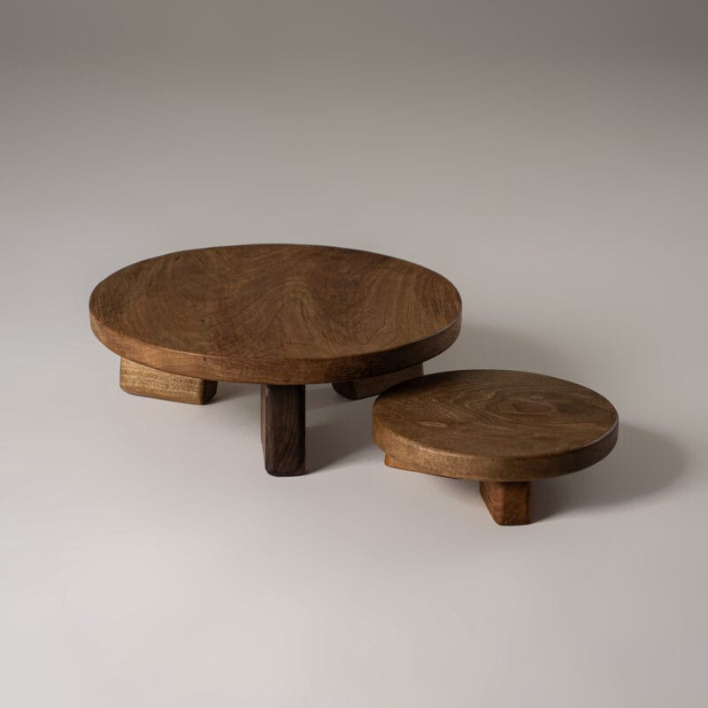 Στρογγυλή, υπερυψωμένη ξύλινη πιατέλα, χειροποίητα κατασκευασμένη, αναδεικνύει τη φυσική ομορφιά και τη μοναδικότητα του ξύλου.