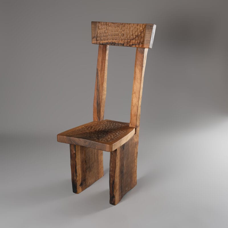 The sturdy, solid wood and bold carved details give the chair a sculptural character, making it not only a functional seat but also a distinctive decorative element. Its dynamic and natural design makes it ideal for spaces that seek originality, authenticity, and timeless aesthetics.