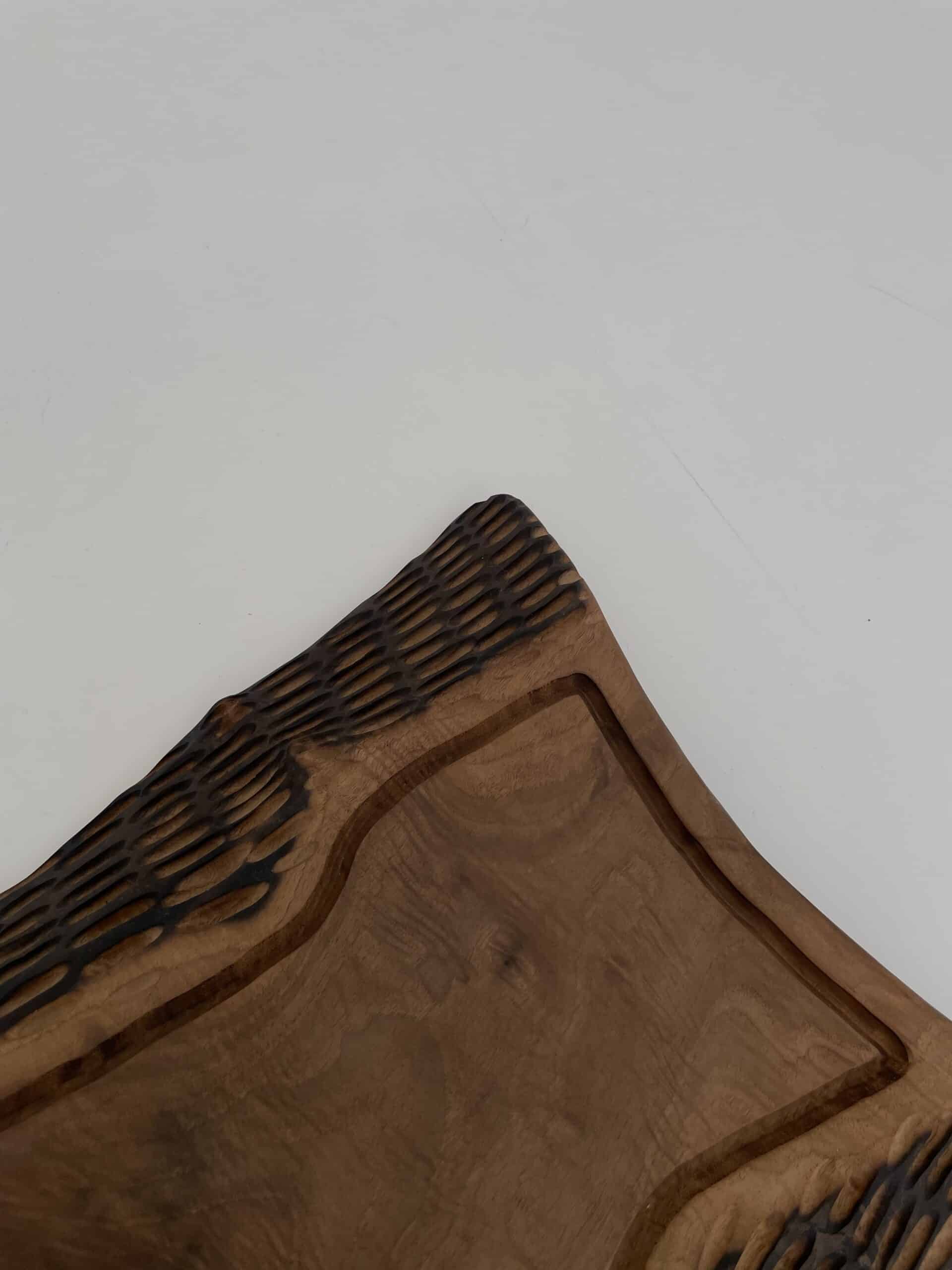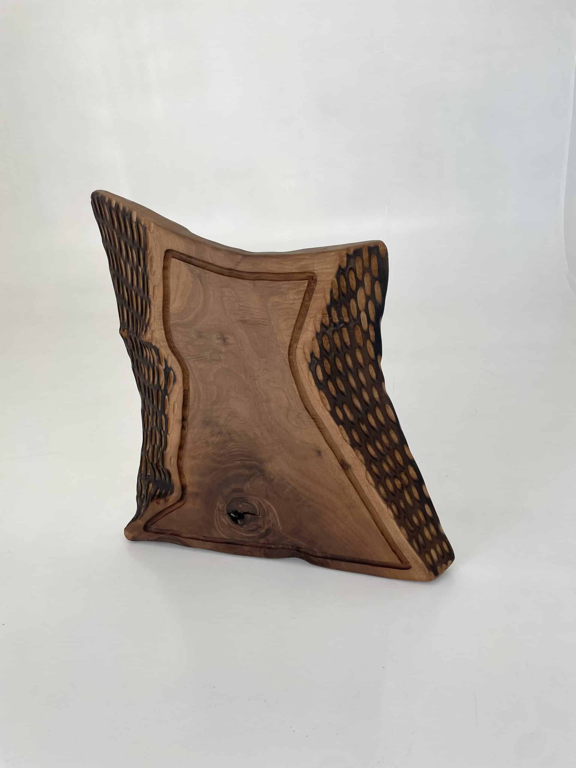 Handmade cutting and serving tray. Impressive primitive aesthetic and natural finishes.