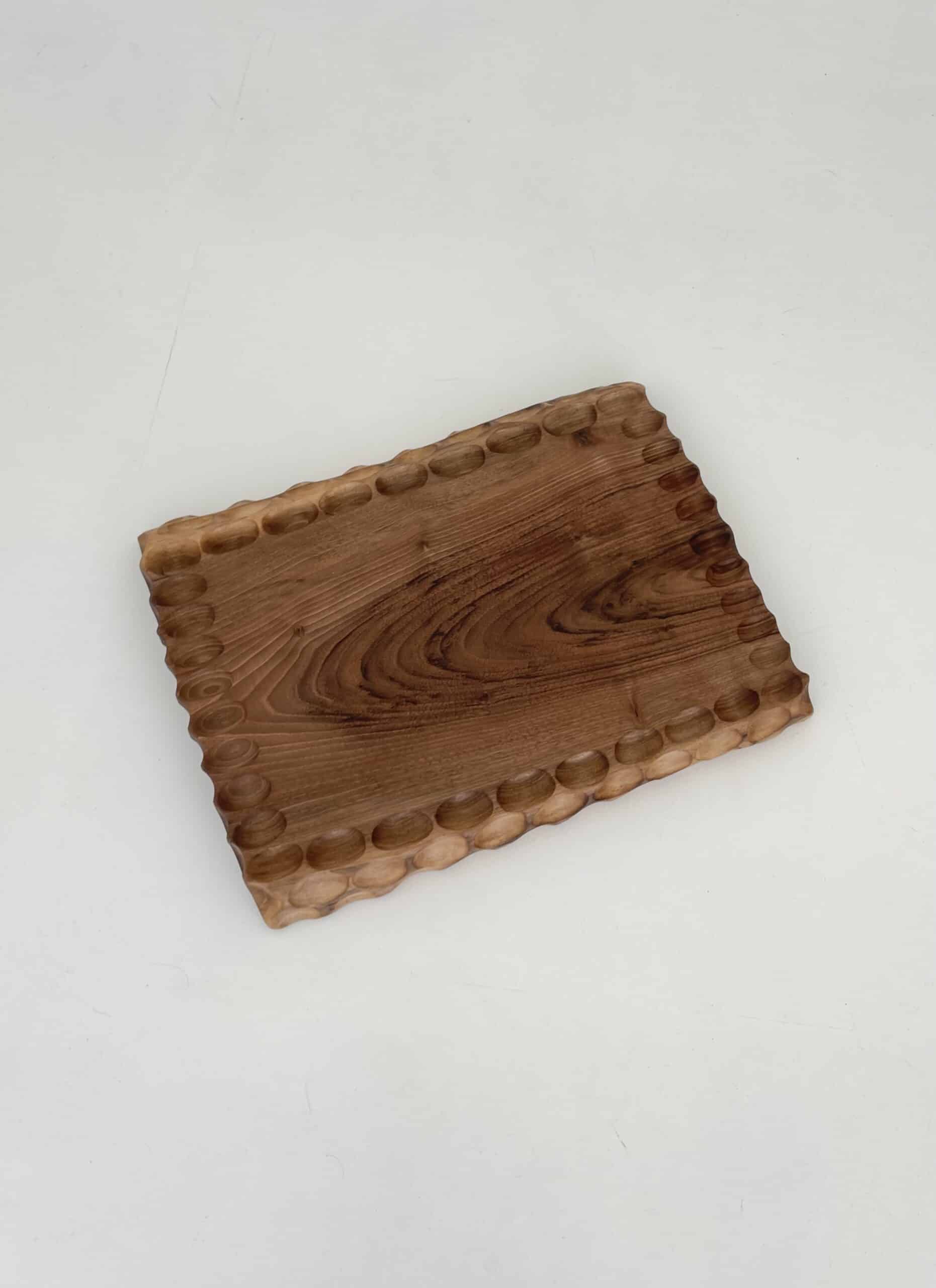 Entirely handmade serving tray. Unique carved design.